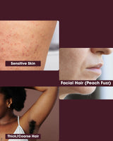 Shave Areas | Armpits, Back, Arms, Legs, Bikini | Cheeks, Chin, Upper Lip, Peach Fuzz, Armpits, Bikini | Armpits, Back, Arms, Legs, Bikini, Facial Hair |